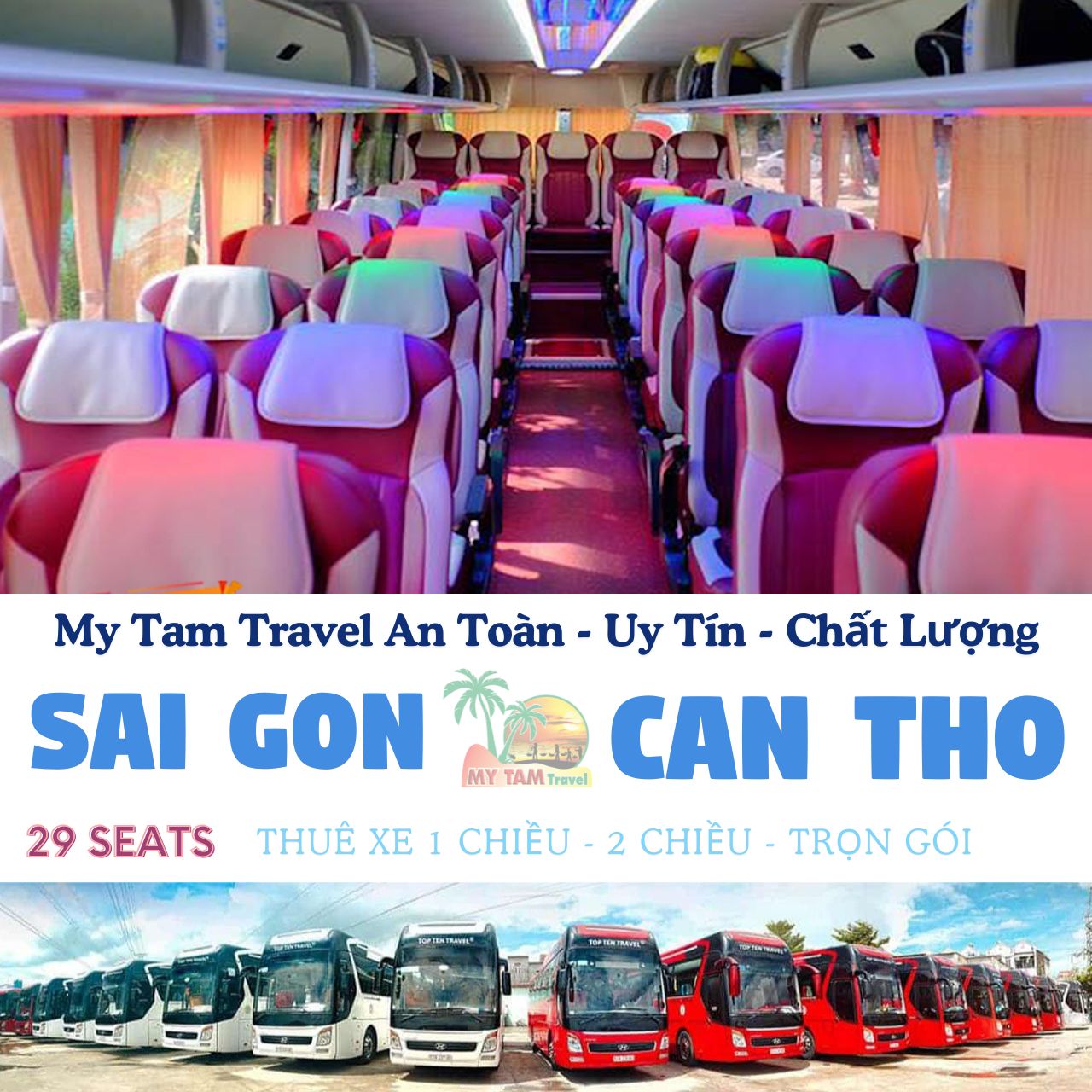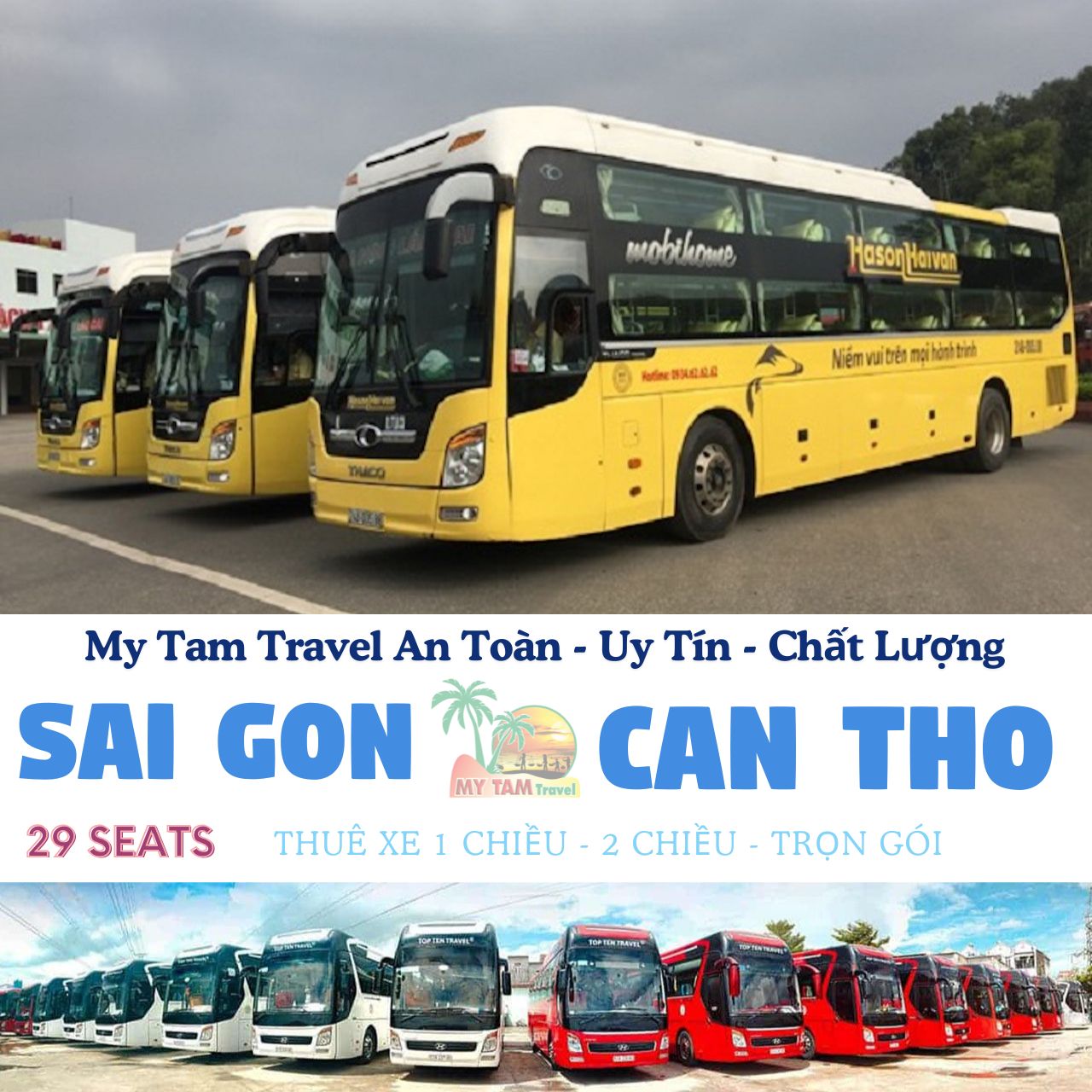 Thuê Xe Cần Thơ Đi TP.HCM cùng My Tam Travel, dịch vụ cho thuê xe chất lượng cao với các dòng xe 4-45 chỗ, Limo 9-28 chỗ phù hợp cho mọi nhu cầu. Chúng tôi cam kết cung cấp các loại xe hiện đại, tiện nghi và phục vụ chuyên nghiệp. Đặt xe ngay hôm nay qua hotline 0939790983 và tận hưởng chuyến đi an toàn, thoải mái. Thuê xe Cần Thơ đi TP.HCM – sự lựa chọn tối ưu cho mọi hành trình.