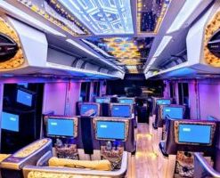 Hệ thống đèn LED trên xe limousine tạo ra không gian sang trọng và ấm cúng. Ánh sáng có thể điều chỉnh theo ý thích, giúp tạo ra bầu không khí phù hợp cho từng chuyến đi, đặc biệt là trong các sự kiện đặc biệt.
